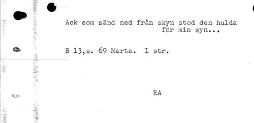 //// Ack som sänd ned från skyn stod den hulda //// för min syn... //// ^ B 13,S. 69 Marta. 1 str. //// + //// - //// RA //// t //// i. - - v-* //// g. //// "-"v* //// € ////