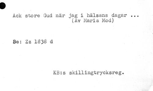 //// Ack store Gud när jag i hälsans dagar ... //// (Av Maria Mod) //// l //// Se: Zz 1^38 d ////