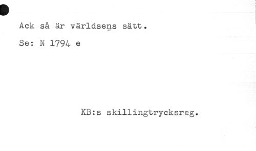 //// Ack så är världsens sätt. //// Se: N 1794 e //// KB:s skillingtrycksreg. ////
