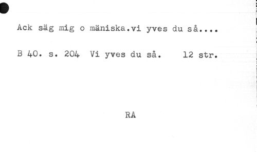 //// t //// i //// Ack säg mig o mäniska.vi yves du så.... } //// B 40. s. 204 Vi yves du så. 12 str. //// i //// i //// RA ////