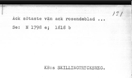 //// Ack sötaste vän ack rosendeblad ... //// * *. //// Se: N 179^ e; 1818 b //// i //// KB:s SKILLINGTRYCKSREG. //// * //// t //// C //// f* //// L ////