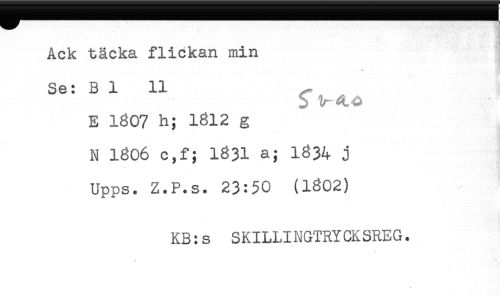 //// Ack täcka flickan min //// Se: 3 1 11 ^ //// b lr4,-a //// E 1307 h; 1312 g //// N 1306 c,f; 1331 a; 1334 j //// Upps. Z.P.s. 23:50 (1302) //// KB:s SKILLINGTRYCKSREG. ////