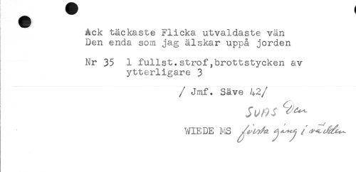 //// Ack täckaste Flicka utvaldaste vän //// Den enda som jag älskar uppå jorden //// Nr 35 1 fullst.strof,brottstycken av //// ytterligare 3 //// / Jmf. Säve 42 //// /WIEDE MS ^^^ ////