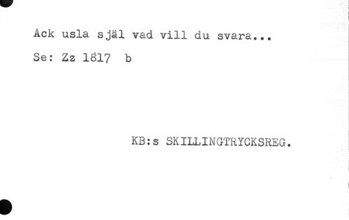 //// Ack usla själ vad vill du svara... //// Se: Zz 1817 b //// i //// i //// i //// KB:s SKILLINGTRYCKSREG. //// ) //// ! //// 1 ////