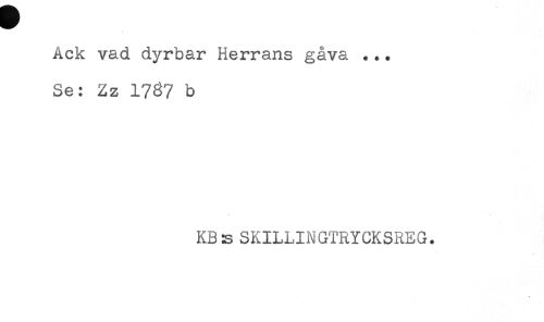//// Ack vad dyrbar Herrans gåva ... //// Se: Zz 1787 b //// KBs SKILLINGTRYCKSREG. //// w ////