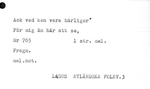 //// Ack vad kan vara härligar* //// För mig än här att se, //// Nr 765 1 str. mel. //// Fragm. //// mel.not. //// L4GUS NYLÄNDSKA F0LKV.3 ////