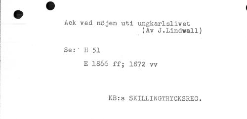 //// Ack vad nöjen uti ungkarlslivet //// (Av J.Lindwall) //// - //// Se:' H 51 //// E 1666 ff; 1672 vv //// KB:s SKILLINGTRYCKSREG. ////