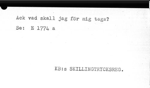 //// ' ' '*...' //// '. - . //// Ack vad skall jag för mig taga? //// Se: E 1774 a //// -A. //// KB:s SKILLINGTRYCKSREG. //// - //// ! //// i ////