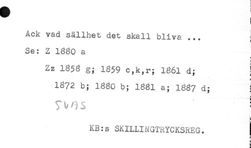 //// ! //// ! //// Ack vad sällhet det skall bliva ... //// Se: Z 1880 a //// H //// Zz 1358 g; 1659 C,k,r; 1861 d; [ //// 1872 b; 1880 b; 1681 a; 1887 d; j //// ! //// i //// KB:s SKILLINGTRYCKSREG. j //// H ////