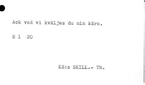 //// Ack vad vi kväljes du min kära. //// B 1 20 //// KB:s SKILL.- TR. ////