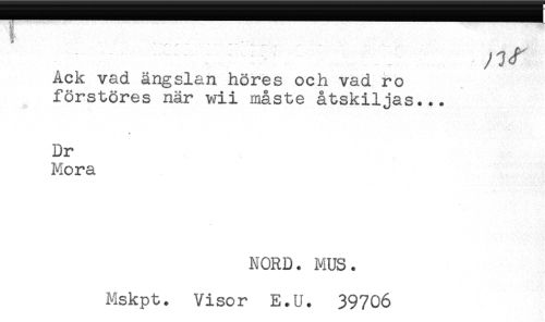 //// .- .' -- . . //// Ack vad ängslan höres och vad ro //// förstöres när wii måste åtskiljas... //// Dr //// Mora //// NORD. MUS. //// Mskpt. Visor E.U. 39706 ////