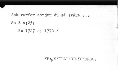 //// Ack varför sörjer du så svåra ... //// Se Z a;25; //// Zz 1727 a; 1770 d //// -i*'.*.* //// KB^ SKILLINGTRYCKSREG. ////