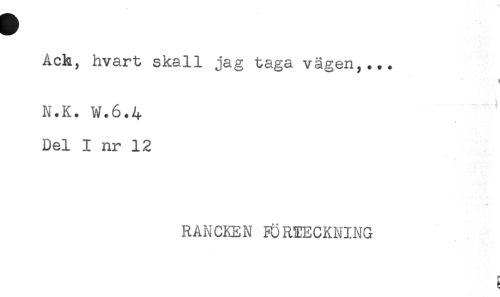 //// Ach, hvart skall jag taga vägen,... //// N.K. w.6.4 //// Del I nr 12 //// RANCKEN FÖRTECKNING //// * ////