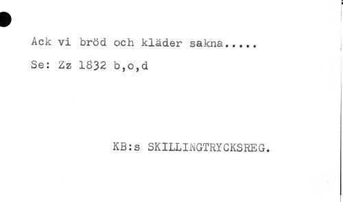 //// < //// Ack vi bröd och kläder sakna..... , //// it //// Se: Zz 1S32 b,o,d //// KB:s SKILLINGTRYCKSREG. ////