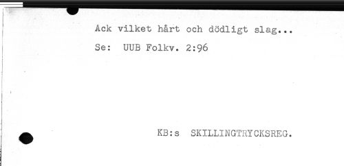 //// * //// tf //// I, //// Ack vilket hårt och dödligt slag... //// Se: UUB Folkv. 2:96 //// * //// < //// ! //// ! //// ) //// ^ KB:s SKILLINGTRYCKSREG. ////