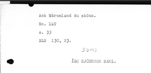 //// f //// Ack Wärmeland du sköna. //// No. 149 //// S. 33 //// SLS 130, 23. //// i ^ ÅBO SJÖBERGS SAKL. ////