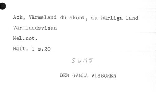 //// Ack, Värmeland du sköna, du härliga land //// Värmlandsvisan //// Mel.not. //// Häft. 1 s.20 //// DEN GAMLA VISBOKEN ////