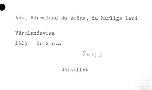 //// Ack, Värmeland du sköna, du härliga land //// Värmlandsvisa //// 1919 Nr 2 s.4 //// DALKULLAN ////