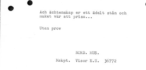//// Ach ächtenskap er ett ädelt stån och //// muket vär att prisa... //// Utan prov //// NORD. HUS. //// Mskpt. Visor E.U. 36772 ////