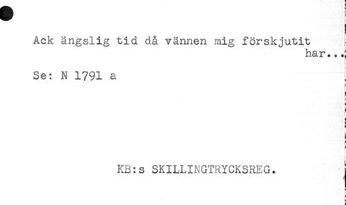 //// Ack ängslig tid då vännen mig förskjutit [ //// har...^ //// Se: N 1791 a ! //// L //// r //// s //// r //// L //// t //// L //// i //// — //// s //// - //// i //// E //// = //// KB:s SKILLINGTRYCKSREG. j //// H //// i ////
