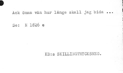 //// c: //// j //// Ack ömina vän hur länge skall jag bida ... [ //// Se: N 1826 e //// < t //// KB:s SKILLINGTRYCKSREG. ////