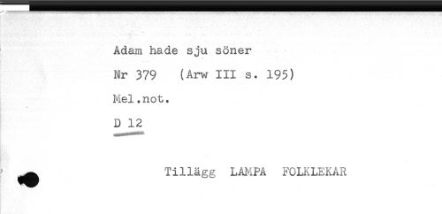 //// . —. - ' //// Adam hade sju söner //// Nr 379 (Arw III s. 195) //// Mel.not. //// - //// D 12 //// .... . //// - ^ Tillägg LAiAPA FOLKLEKAR ////