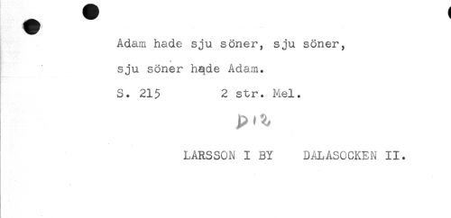 //// B- ' ^^^^^^^^^^^^^ //// Adam hade sju söner, sju söner, //// * //// sju söner hqde Adam. //// S. 215 2 str. Mel. //// - //// LARSSON I BY DALASOCKEN II. ////