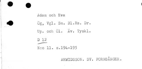 //// i Adam och Eva //// - //// ^ ög, Vgl. Sm. Bl.Hs. Dr. //// Up. och öl. Av. Tyskl. //// D 12 //// i //// N:o 11. s.194-195 //// t //// ARWIDSSON. SV. FORNSÅNGER. ////