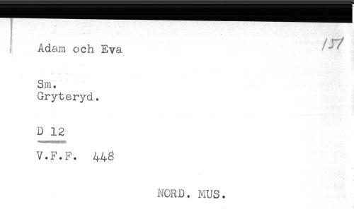 //// T ** -. .. //// Adam och Eva //// Sm. //// Gryteryd. //// D 12 //// V.F.F. 448 //// NORD. MUS. ////