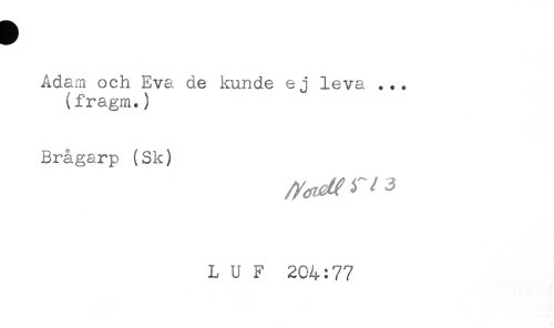 //// Adam och Eva de kunde e j leva . .. //// (fragm*) //// Brågarp (Sk) //// L U F 204:77 ////
