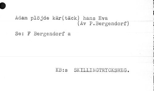 //// Adam plöjde kär(täck) hans Eva ^ //// (Av P.Sergendorf) t //// - //// Se: F Bergendorf a //// = //// H //// * //// a //// * ^ //// i //// KB:s SKILLINGTRYCKSREG. ////