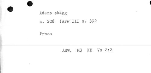 //// Adams skägg //// s* 20g (Arw III s. 392 //// Prosa //// ARW. MS KB Vs 2:2 ////