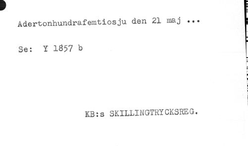 //// Adertonhundrafemtiosju den 21 maj ... t //// Se: Y 1857 b //// - //// < //// r //// H //// < //// ! //// r //// h //// L //// i //// t //// KB:s SKILLINGTRYCKSREG. ////