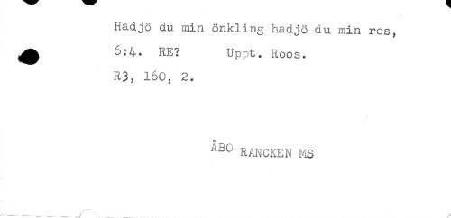 //// Hadjö du min önkling hadjö du min ros, //// ^ 6:4. RE? Uppt. Roos. //// R3, 160, 2. //// C? //// RAIVCKEN //// —' ////