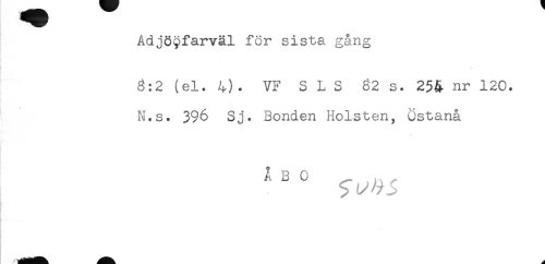 //// Adjö^farväl för sista gång //// 3:2 (el. VF S L S 62 s. 25& nr 120. //// N.s. 396 Sj. Bonden Holsten, östanå //// ÅBO ////