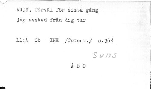 //// Adjö, farväl för sista gång //// jag avsked från dig tar //// 11:4 Öb IKE /fotost./ s.366 //// ÅBO //// - //// P //// H //// B ////