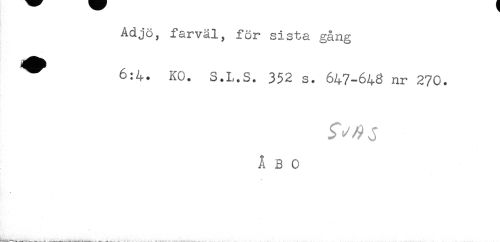//// Adjö, farväl, för sista gång //// ^ 6:4. KO. S.L.S. 352 s. 647-648 nr 270. //// ÅBO //// tLA ^ < / ' ' ir ////