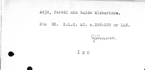 //// * * -- - - - . //// Adjö, farväl min hulda älskarinna. //// - //// [ 2:4 GE. S.L.S. 40. s.226-229 nr 146. //// ' //// j ^^ ////