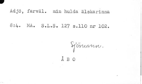 //// Adjö, farväl, min hulda älskarinna //// 6:4. MA. S.L.S. 127 s.110 nr 102. //// * * //// ÅBO ////