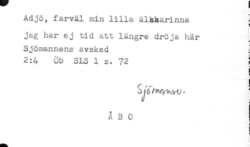 //// Adjö, farväl min lilla älskarinna L //// H //// jag har ej tid att längre dröja här ^ //// Sjömannens avsked //// 2:4 Öb SLS 1 s. 72 ! //// i //// ! //// t //// ! //// ! //// i ////