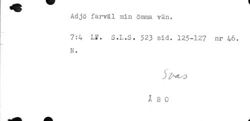 //// Adjö farväl min ömma vän. //// 7:4 LF. S.L.S. 523 sid. 125-127 nr 46. //// N. ////