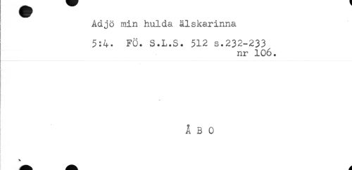 //// Adjö min hulda älskarinna //// 5:4- FÖ. S.L.S. 512 s.232-233 //// nr 106. //// ).... ..... ' ' ' ' ' - * - ' ' ' //// ÅBO ////