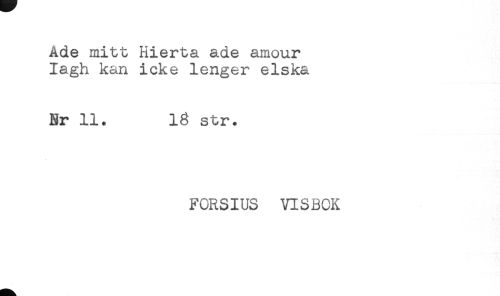 //// Ade mitt Hierta ade amour //// Iagh kan icke lenger elska //// Er 11. 18 str. //// FCRSIUS VISBOK ////