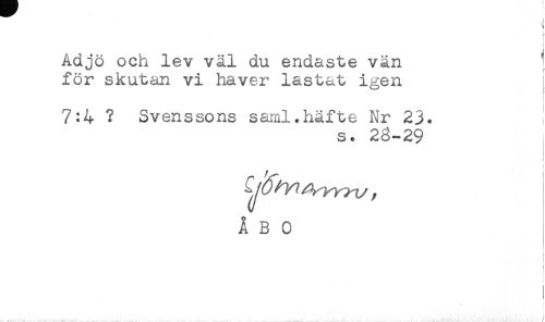 //// Adjö och lev väl du endaste vän //// för skutan vi haver lastat igen //// r //// t //// 7:4 ? Svenssons saml.häfte Nr 23. //// s. 23-29 //// r //// ÅBO //// < //// i //// ! //// i //// i //// * < //// i ////