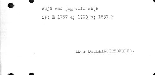 //// ^ Adjö vad jag vill säja //// - //// Se: E 1737 a; 1793 b; 1637 h //// KB:s SKILLINGTRYCKSREG. ////