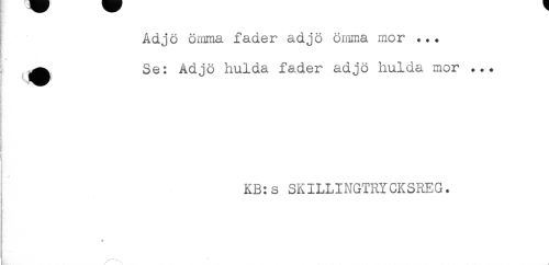//// Adjö ömma fader adjö ömma mor ... //// T //// ^^ Se: Adjö hulda fader adjö hulda mor ... //// KB:s SKILLINGTRYCKSREG. ////