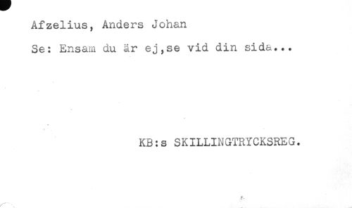 //// Afzelius, Anders Johan //// Se: Ensam du är ej,se vid din sida... //// KB:s SKILLINGTRYCKSREG. ////