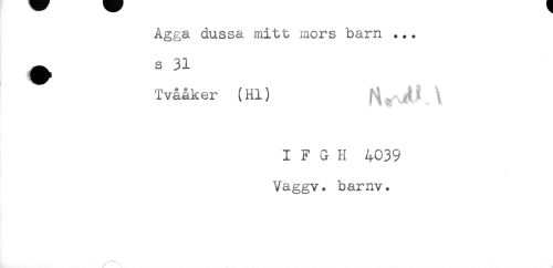 //// Agga dussa mitt mors barn ... //// ^ s 31 //// Tvååker (Hl) ^ //// I F G H 4039 //// Vaggv. barnv. //// //// // * //// /
