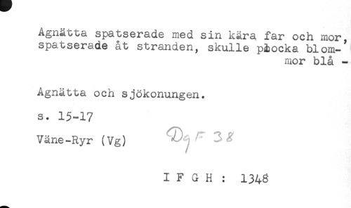 //// Agnåtta spatserade med sin kära far och mor //// spatserade åt stranden, skulle pRocka blom-' //// mor blå - //// Agnätta och sjökonungen. //// i i //// ^. ^—-j- ^ //// Väne -Ryr (Vg) ^ ; ^ 3 ^ //// I F G H : 1346 ////
