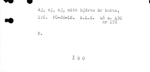 //// Aj, aj, aj, mitt hjärta är borta, //// ^^ 1:6. FÖ-JO-LE. S.L.S. 46 s.^430 //// N. ////